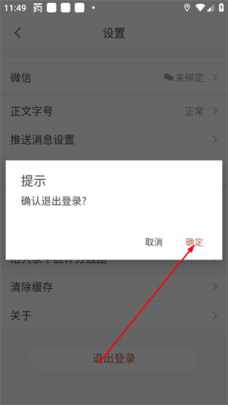3、在设置页面点击底部的退出登录,弹出确认提示框。