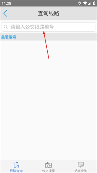 2、在查询线路页面的搜索框内,输入要查询的公交线路编号,触发搜索结果展示。