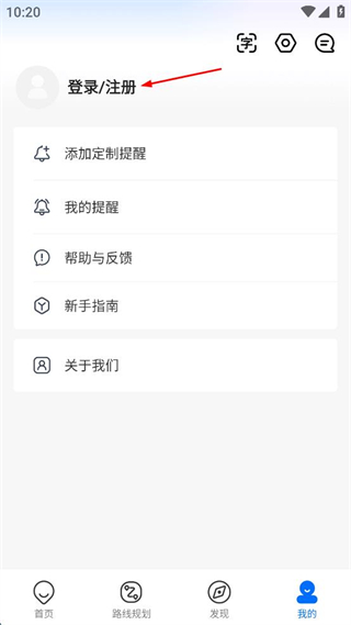 2、在该页面找到登录/注册按钮,点击该按钮进入应用的登录界面。
