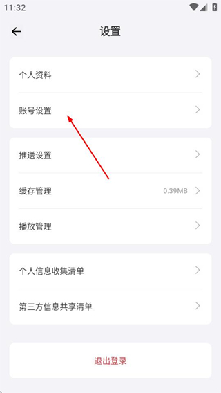 3、在设置页面,点击账号设置选项,进入账号设置页面。