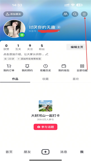 1、启动抖音软件,点击底部导航栏的消息的图标。