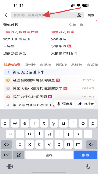 2、点击后,进入到搜索页面内,点击搜索框激活输入法。