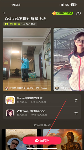2、进入该舞蹈跳转的页面内,点击下方拍同款的按钮。