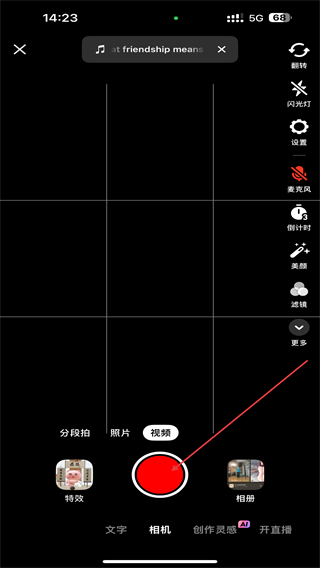 3、进入拍摄的界面内,点击最下方红色的按钮即可开始。