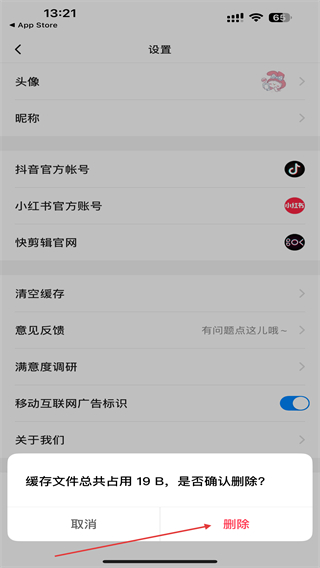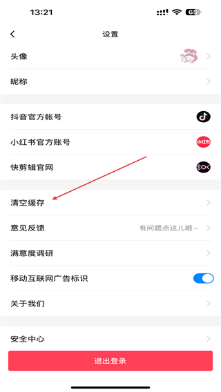 3、进入设置的界面内,点击下方清空缓存的按钮。