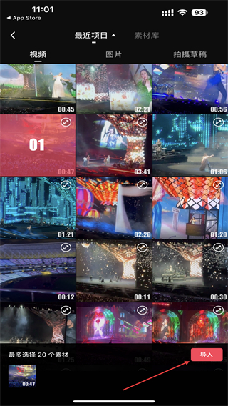2、进入相册的页面内,选择好后点击导入的按钮。