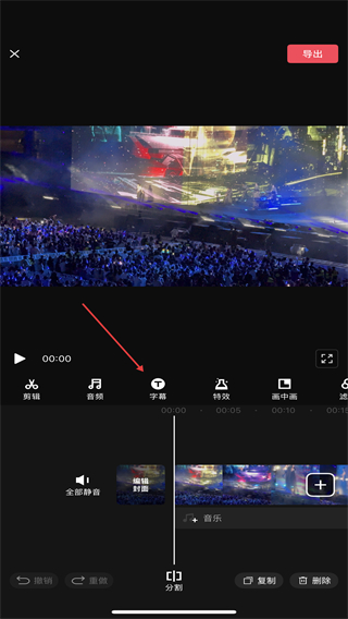 3、进入剪辑的页面内,点击下方字幕的按钮。