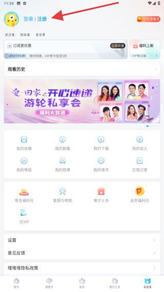 2、在个人中心顶部的点击登录/注册按钮,即可弹出登录的页面。