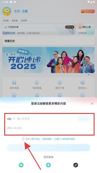 3、输入会员手机号码,点击获取验证码,等待短信接收6位数字验证码并勾选同意用户协议、隐私政策及儿童个人信息保护规则。