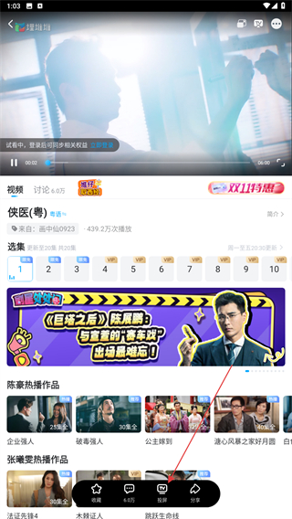 3、进入播放的界面内,点击最下方投屏的功能按钮即可完成。