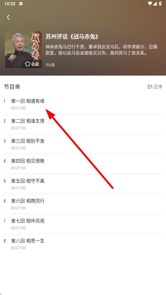 3、点击该节目进入播放页面,下方节目单区域就能看到目录内容,点击对应目录可收听。
