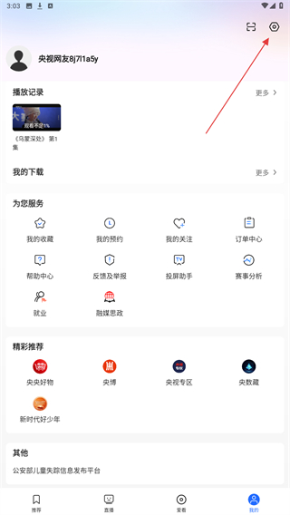 1、启动中国网络电视台,在首页导航栏中点击我的。