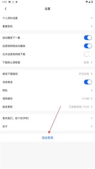3、进入设置的页面内,点击下方退出登录的按钮。