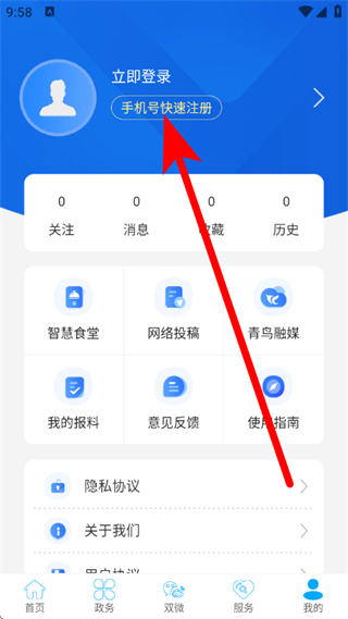 4、在快速注册页面,输入手机号,点击发送验证码。