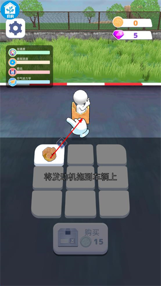 3、按照提示将显示的发动机部件拖到对应的车辆位置上,完成该部件的装配操作。