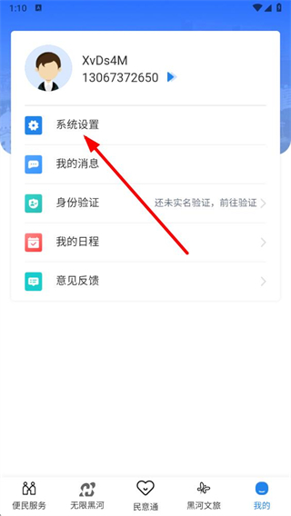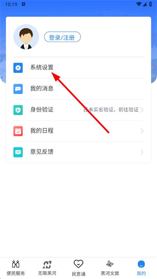 1、打开我的黑河APP,点击底部导航栏的我的,进入个人页面。