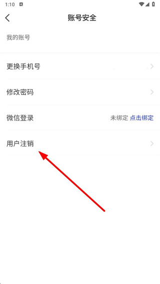 4、在账号安全页面点击用户注销选项,按提示完成账号注销操作。
