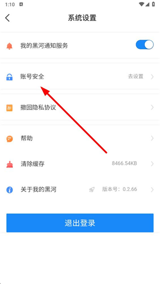 3、在系统设置页面点击账号安全选项,进入账号安全页面。