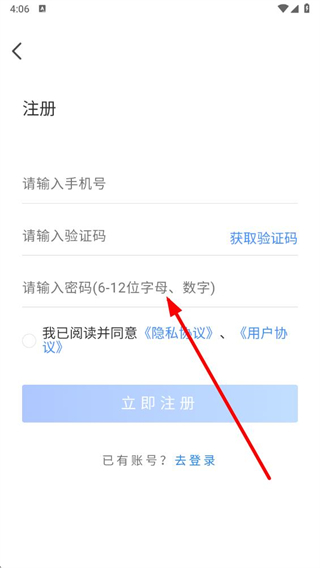 4、在注册页面,输入手机号、验证码和密码,勾选相关协议后,点击立即注册即可完成账号注册。