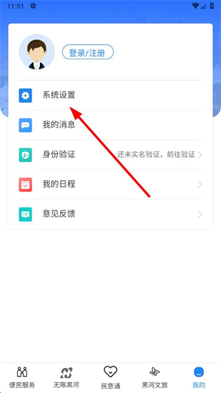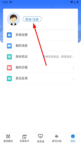 1、打开我的黑河APP,点击右下角我的进入个人页面。