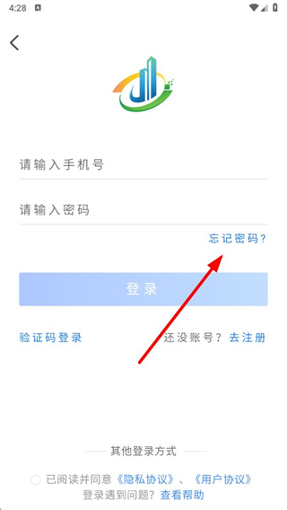 3、在登录页面点击忘记密码选项,进入找回密码的信息填写界面。