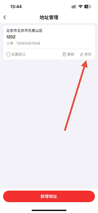 3、进入地址管理页面后,找到要修改的地址,点击修改选项。