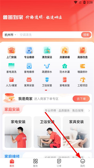 1、打开鲁班到家APP,点击上门安装选项。