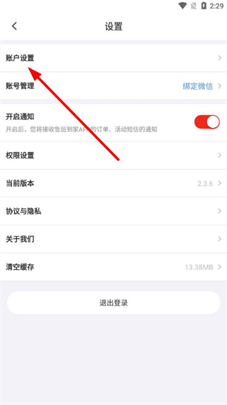 3、在设置界面里,点击账户设置选项,进入账号设置操作。