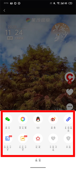 4、在分享菜单中,点击选择对应渠道,完成视频内容的分享操作。