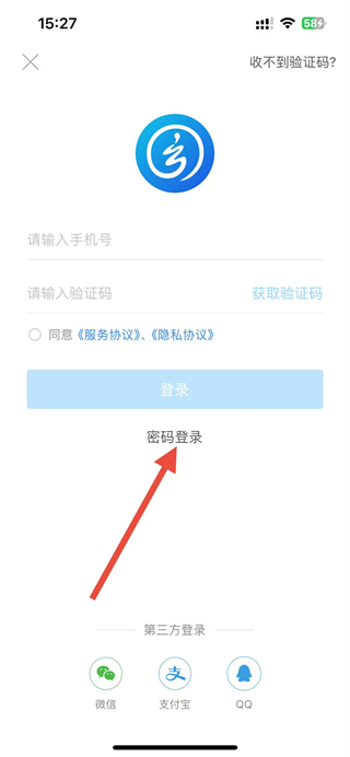 3、在登录界面中,找到密码登录选项并点击,切换至密码登录的输入页面。