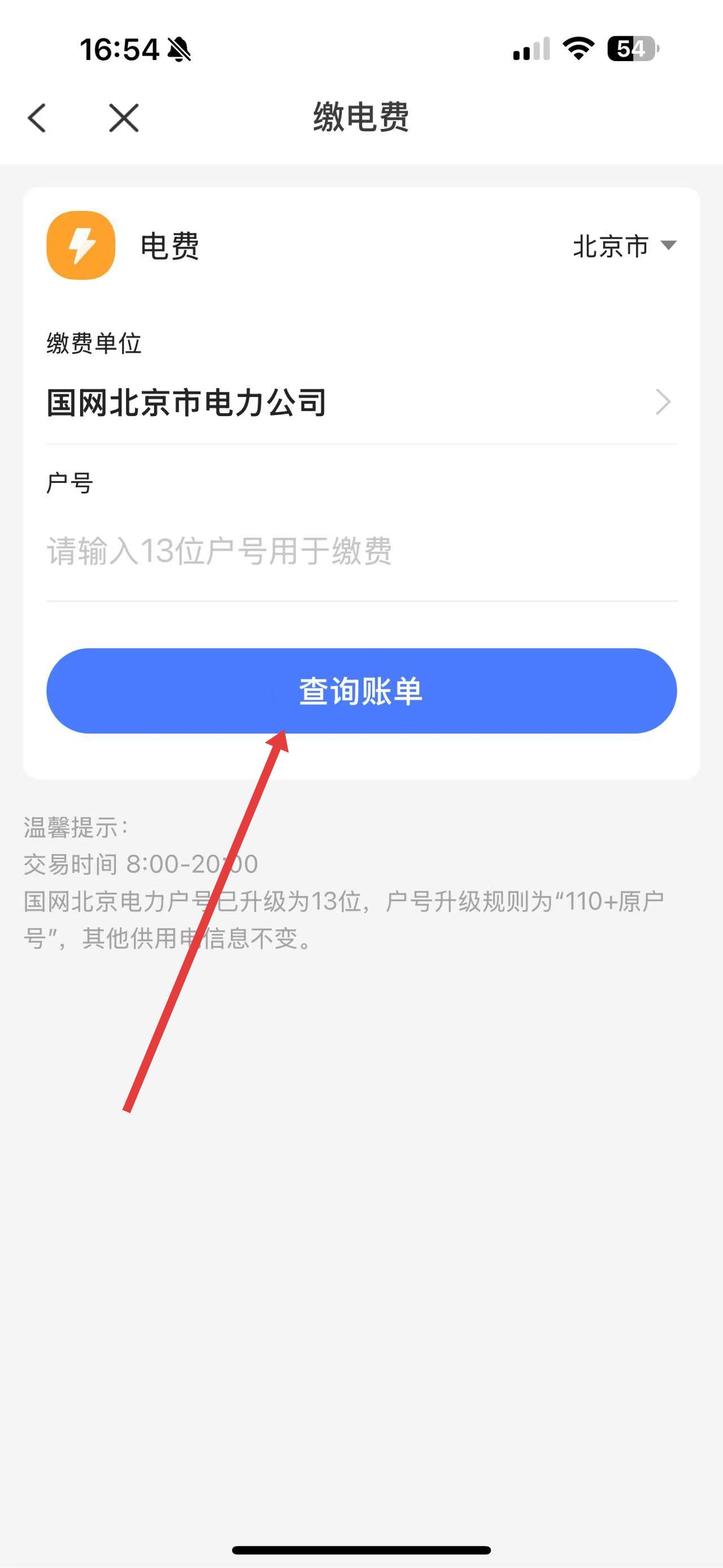 3、进入具体缴费项目页面,如缴电费,选择或输入缴费单位,并填写正确的户号,然后点击查询账单,确认账单信息后按提示完成支付即可。