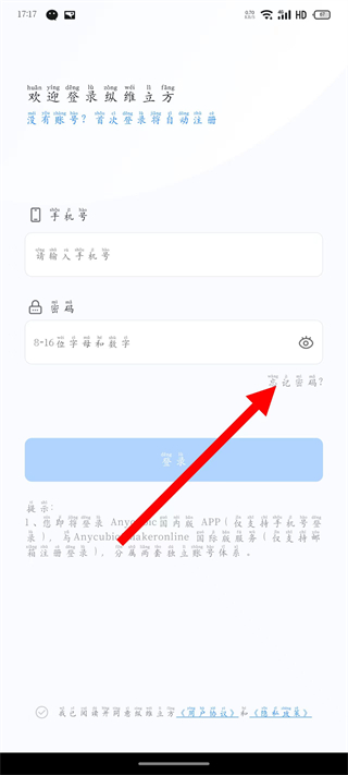 2、在登录页面,点击忘记密码,进入找回密码页面。