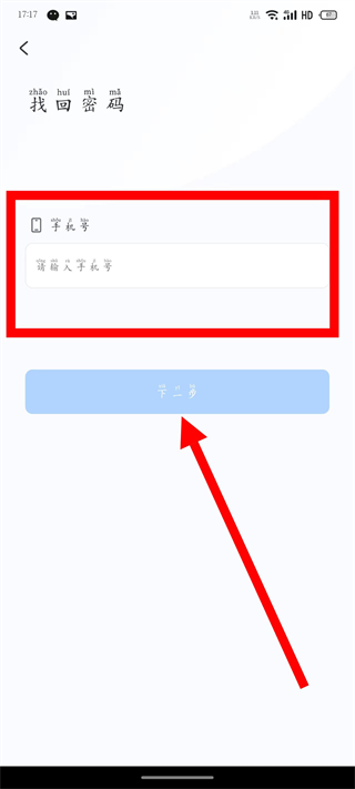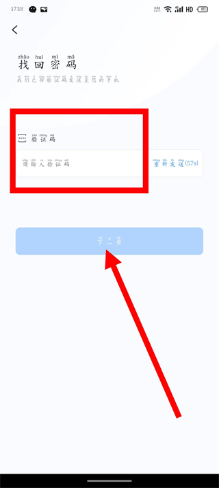 4、在输入框中输入验证码,点击下一步,完成密码找回流程。