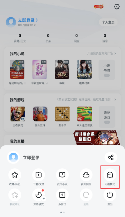uc浏览器怎么设置无痕模式