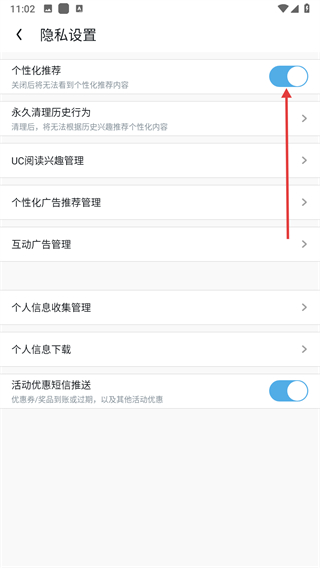 uc浏览器怎么关闭个性化推荐功能