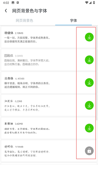 4、选择想要更换的字体样式,点击对应字体旁的下载按钮即可应用。