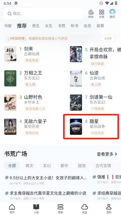2、进入小说页面后可以挑选出一个自己喜爱的小说,并点击进入查看小说内容;