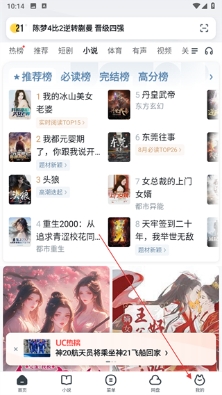 1、打开UC浏览器,点击右下角我的选项,进入我的页面。