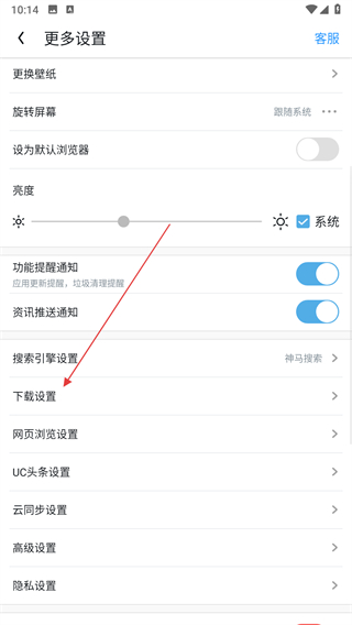 3、在设置页面找到下载设置选项,点击进入下载设置页面。