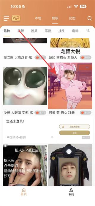 2、在模板页面,选择喜欢的模板类型,如最新、搞笑、换头等,挑选心仪的模板。