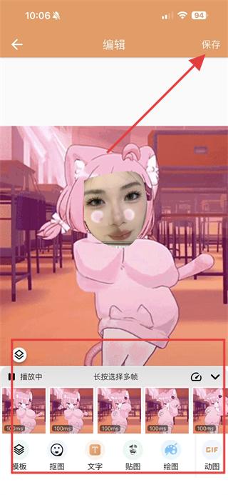 3、选择模板后,进入编辑页面,可对模板进行抠图、添加文字、贴图、绘图、动图等编辑操作。