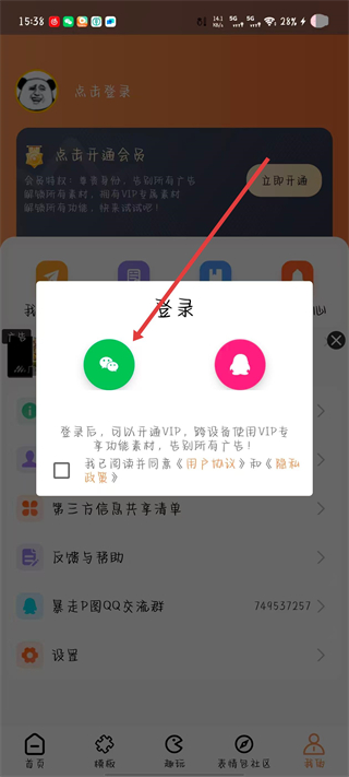 3、在弹出的登录方式选择界面中,点击微信图标。