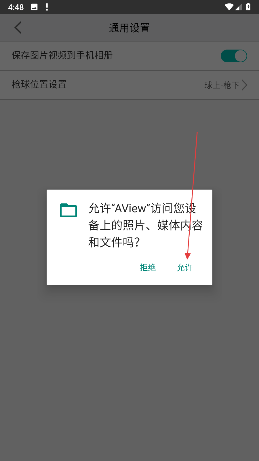 3、点击开关按钮后会弹出权限请求框询问是否允许Aview访问设备照片媒体内容和文件,点击允许即可完成设置。