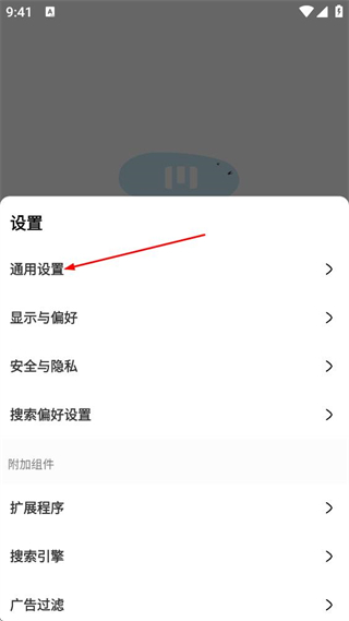 3、在设置页面,点击通用设置选项,进入通用设置页面。