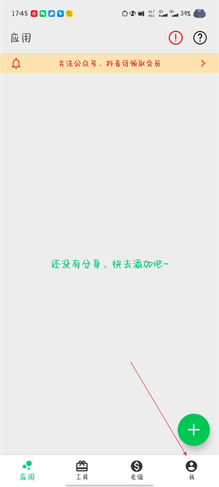 1、打开幻影分身应用进入主界面,在界面右下角点击绿色带有+号的按钮,进入选择应用的页面。