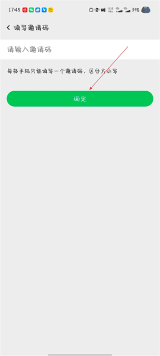 4、在输入框中输入邀请码,点击确定按钮,完成邀请码输入。