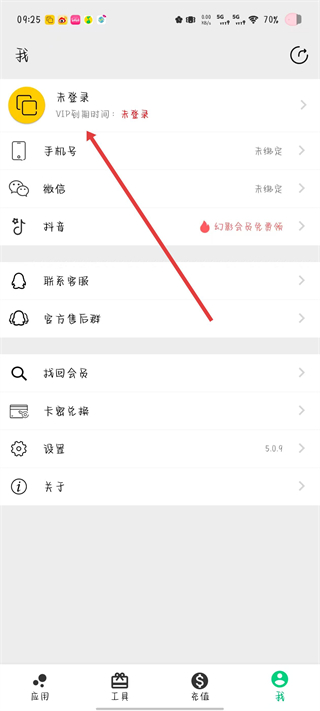 2、进入个人中心页面,点击未登录区域进入登录界面。