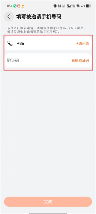 4、选择已收到邀请,输入手机号码并获取验证码即可。