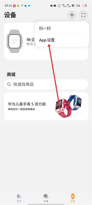 3、选择扫码绑定,扫描手表屏幕上的二维码即可。