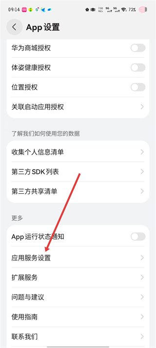 3、找到应用服务设置选项并点击,进入对应的服务选择页面。